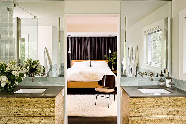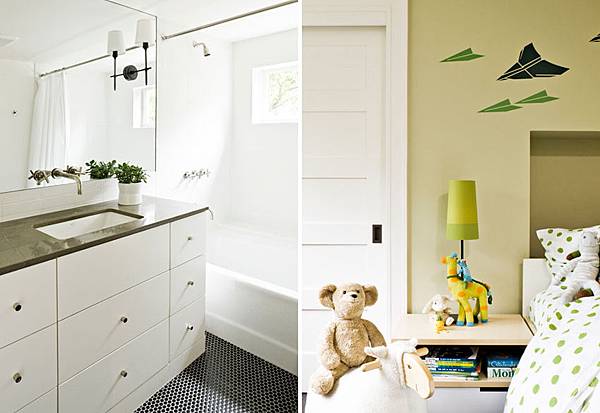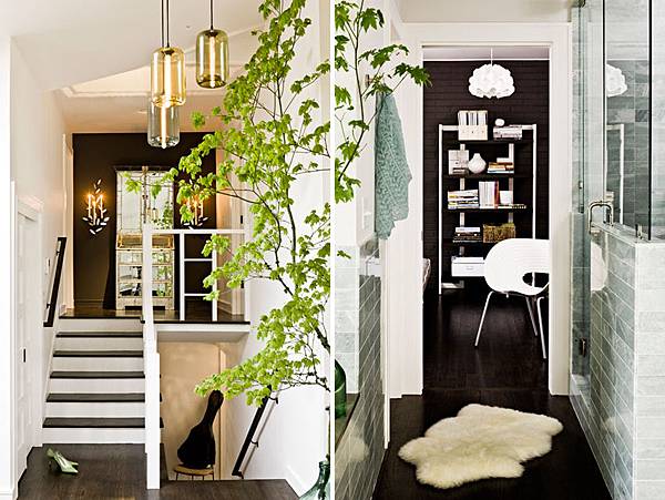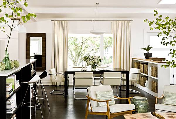 想不到這間房子的前身是個牧場吧!由美國波特蘭 Jessica Helgerson 室內設計公司進行改造的這間老宅,開放式的 LDK(Living room- Dining room- Kitchen)規劃在全屋最通風良好、採光一流的大房間。以深色檀木地板、刷白牆面,黑白兩色為主體,搭配線條簡約的木質家具,最後在每個空間中放進一點綠意,簡簡單單就把自然鄉村風融入空間,連廁所壁貼也是樹林造型。想要嘗試微鄉村風的你,不妨從室內植物開始嘗試吧!